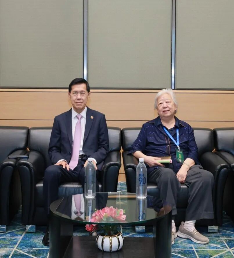 刘蕴华会长(右)与泰国前副总理王鹏狄畅谈亚洲养老行业国际化愿景。